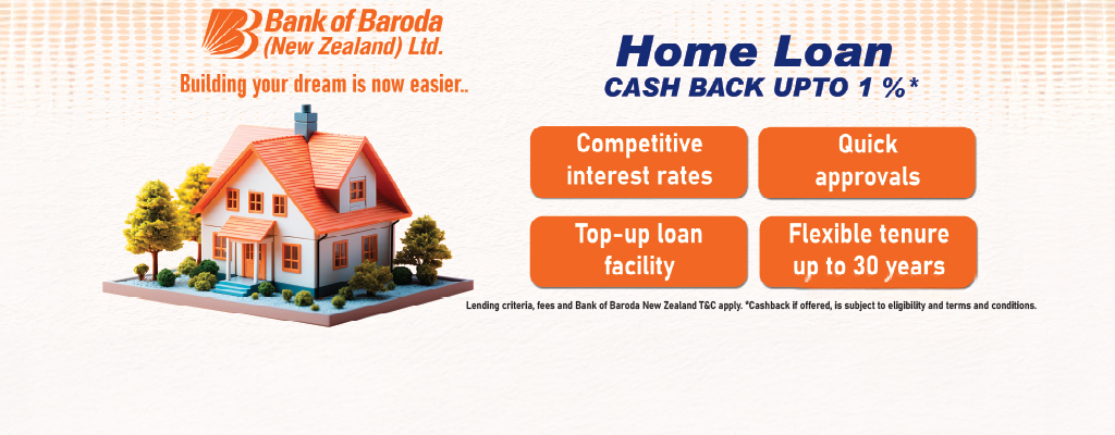 Bank of Baroda (New Zealand) Ltd is the first Indian bank to foray into New Zealand. The Bank’s network in 15 countries will be advantageous to customers who have personal/corporate relations with these countries. Its leading personal remittance product – Rapidfunds2India has been very popular for its speed and ease.